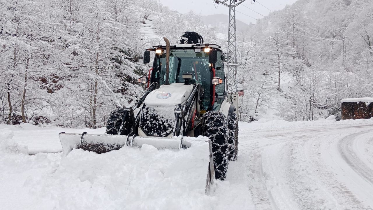 Trabzon'un yüksek kesimlerde dün gece etkili olan kar yağışı nedeniyle 70 mahalle yolu ulaşıma kapandı. Büyükşehir Belediyesi ekiplerinin yol açma çalışmaları sürüyor.