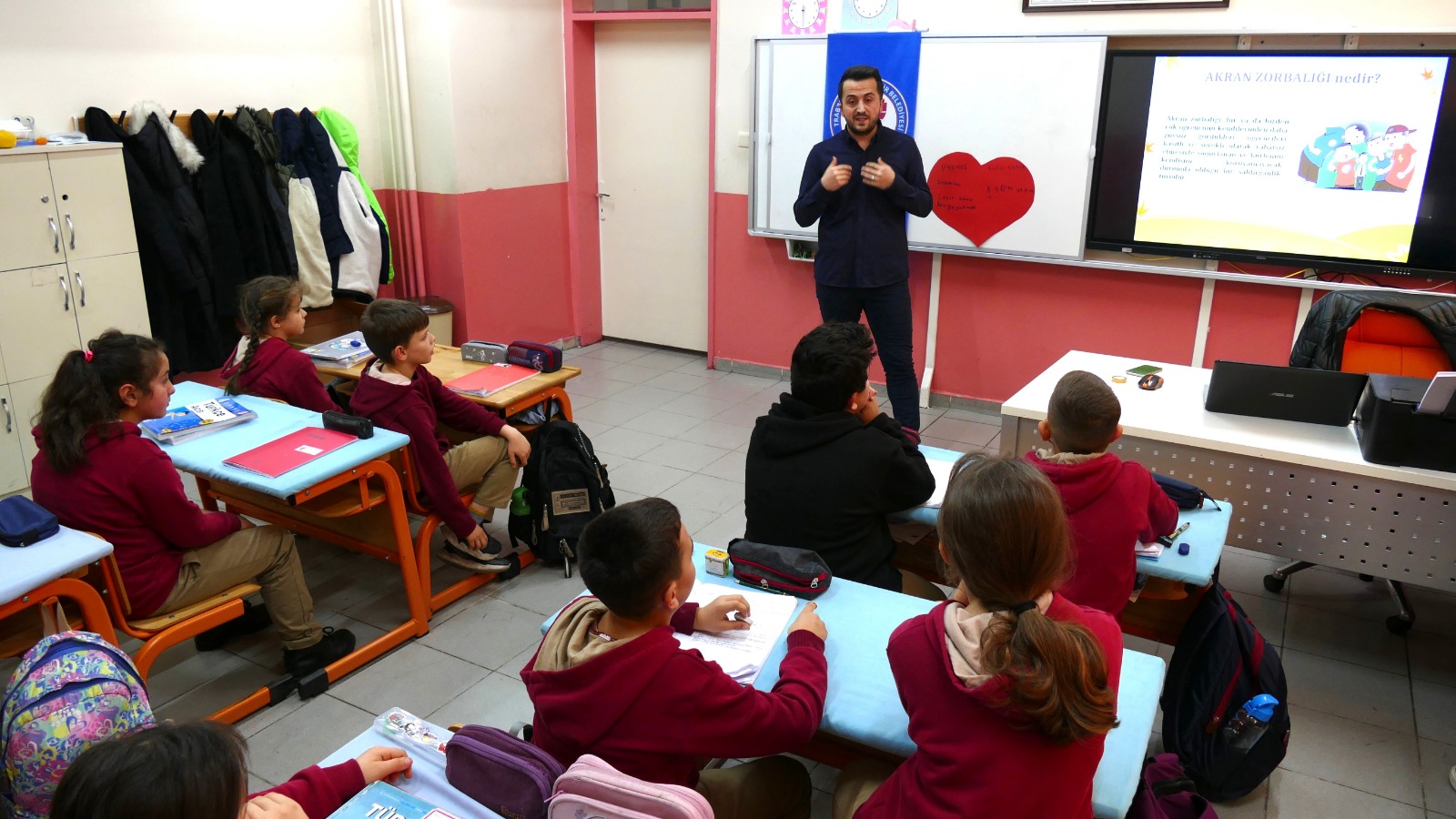 Trabzon Büyükşehir Belediyesi, çocukların güvenli ve sağlıklı bir eğitim ortamında gelişimlerini desteklemek amacıyla akran zorbalığına karşı farkındalık eğitimlerini kararlılıkla sürdürüyor. Büyükşehir Belediyesi Sosyal Hizmetler Dairesi Başkanlığı ile Ortahisar İlçe Milli Eğitim Müdürlüğü arasında imzalanan protokol çerçevesinde yürütülen çalışmalar kapsamında, 2025 yılı içerisinde bin 518 öğrenciye akran zorbalığına yönelik bilinçlendirme eğitimi verilmişti. Eğitim programlarına, 2026 yılının başlangıcıyla birlikte Ortahisar Kireçhane İlkokulu’nda devam edildi. Eğitimler, köy okullarında belirlenen takvim doğrultusunda sürdürülüyor.