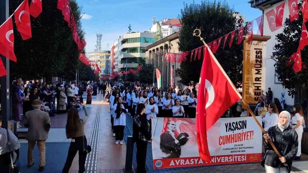 Avrasya Üniversitesi, 29 Ekim Cumhuriyet Bayramı etkinliklerini Trabzon Maraş Caddesi’nde 60 öğrencinin sahnelediği Harmandalı Zeybeği ile coşkuyla başlattı.