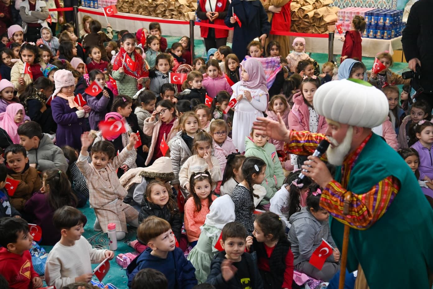 Trabzon Büyükşehir Belediyesi, Ramazan ayının manevi atmosferini çocuklara küçük yaşlardan itibaren hissettirmek amacıyla düzenlediği ‘Tekne Orucu’ etkinliklerini her gün farklı bir ilçede sürdürmeye devam ediyor. Trabzon Büyükşehir Belediye Başkanı Ahmet Metin Genç, Ramazan ayı dolayısıyla başlattığı ilçe ziyaretleri kapsamında çocukları bu anlamlı etkinliklerde yalnız bırakmıyor. Bugün Maçka ilçesi Merkez Camii’nde gerçekleştirilen programa Başkan Genç’in yanı sıra Kaymakam Şahin Demir, İlçe Belediye Başkanı Koray Koçhan AK Parti İl Başkan Yardımcısı Salih Seyyar ve AK Parti ilçe teşkilatı üyeleri de katıldı. İlahilerin okunduğu programda, hain teröristler tarafından 15 yaşında şehit edilen Maçkalı Eren Bülbül için dualar edilerek büyük Türk bayrağı açıldı. Çocukların yoğun ilgi gösterdiği etkinlikte hem duygusal anlar yaşandı hem de Nasrettin Hoca hikayeleri ile Karagöz ve Hacivat gösterisi sayesinde keyifli dakikalar geçirildi.