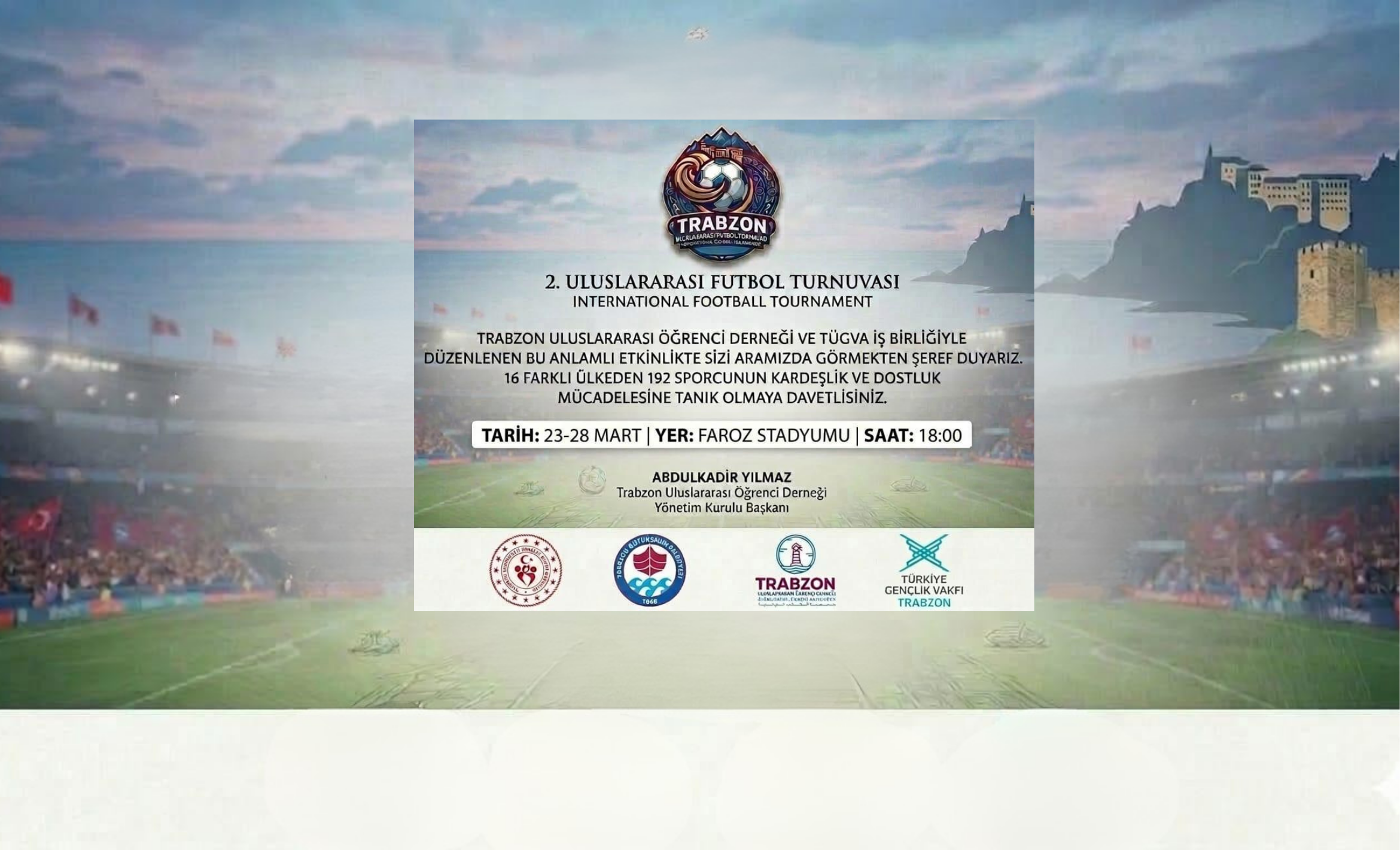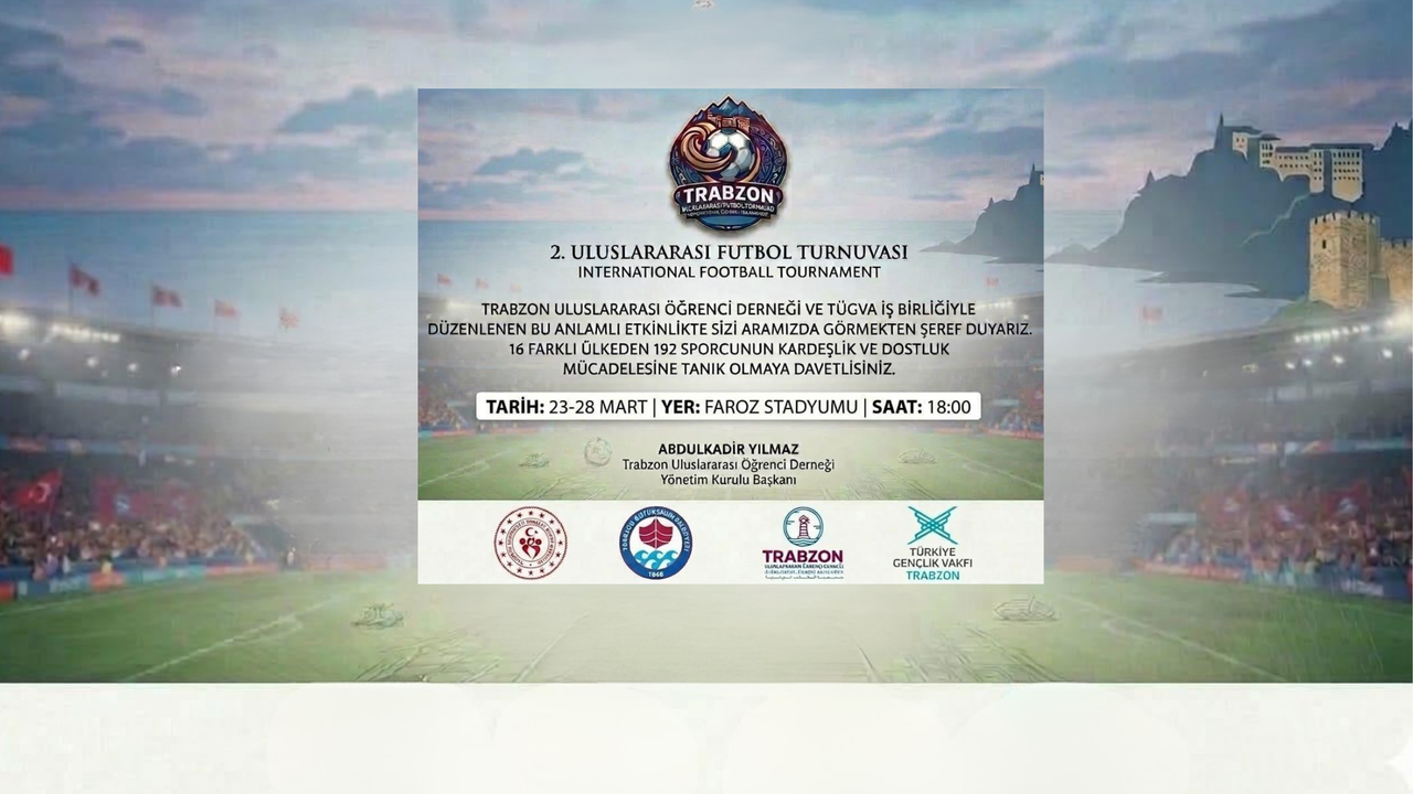 Trabzon Büyükşehir Belediyesi’nin ev sahipliğinde, uluslararası öğrencileri spor aracılığıyla bir araya getiren önemli bir organizasyon hayata geçiriliyor. Gençlik ve Spor Hizmetleri Dairesi Başkanlığı koordinasyonunda düzenlenen 2. Uluslararası Futbol Turnuvası, 23 Mart 2026 Pazartesi günü saat 18.00’de Faroz Futbol Sahası’nda başlayacak. Trabzon Uluslararası Öğrenci Derneği ve TÜGVA Trabzon öncülüğünde gerçekleştirilecek turnuva, şehirde eğitim gören uluslararası öğrencilerin katılımıyla düzenleniyor.
