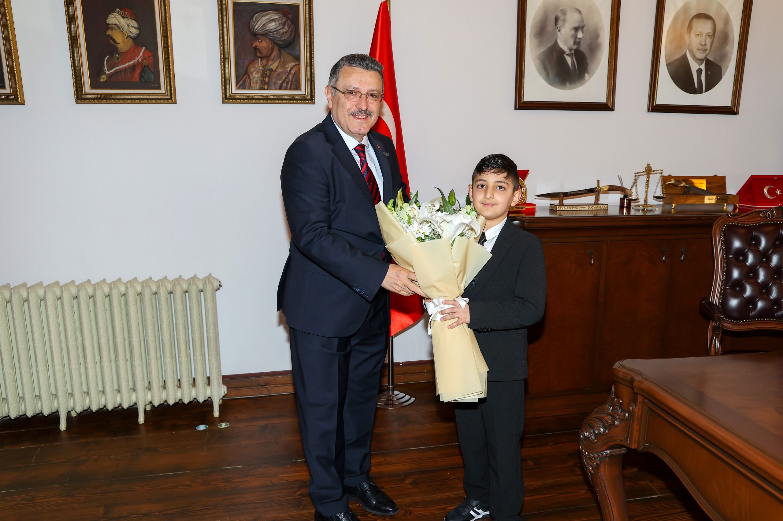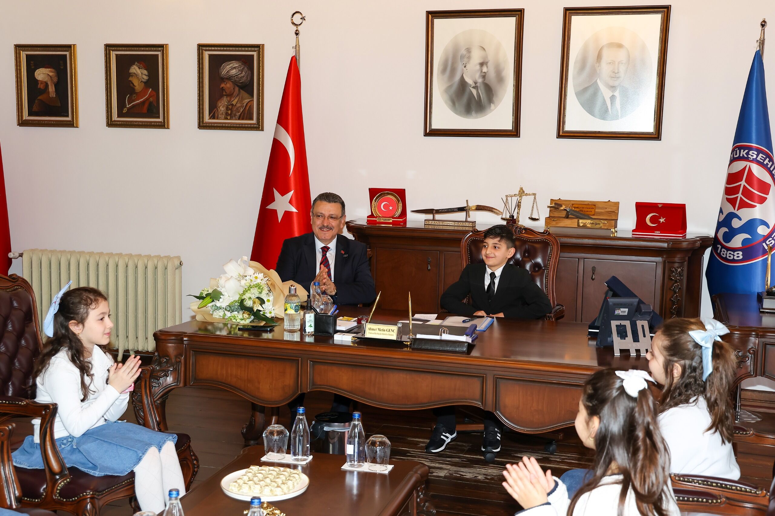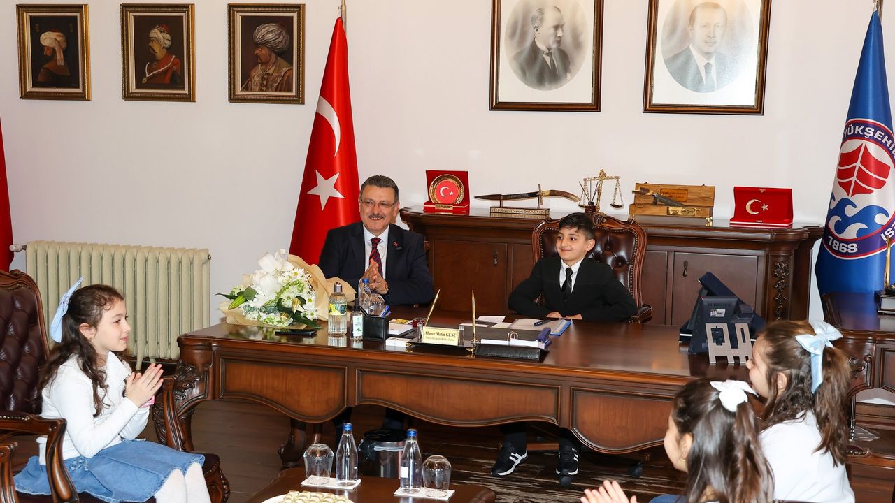 Trabzon Büyükşehir Belediye Başkanı Ahmet Metin Genç, 23 Nisan Ulusal Egemenlik ve Çocuk Bayramı kapsamında makam koltuğunu temsili olarak Dumlupınar İlkokulu 3-B sınıfı öğrencisi Hamza Arslan’a devretti. Büyükşehir Belediyesi’nde düzenlenen programa Hamza’nın yanı sıra sınıf arkadaşları da katıldı.