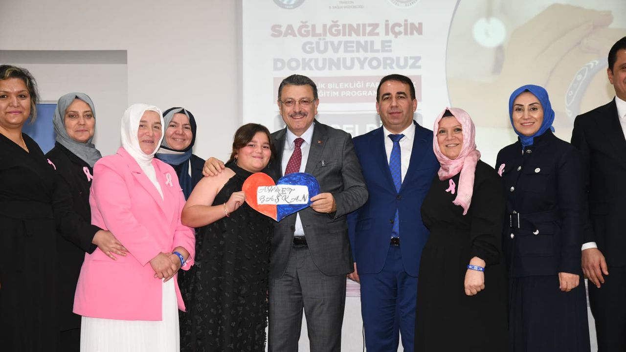 Trabzon Büyükşehir Belediye Başkanı Ahmet Metin Genç, Kadın Yaşam ve İstihdam Merkezi’nde “Sağlığınız İçin Güvenle Dokunuyoruz” mottosu ile düzenlenen Tıbbi Kimlik Bilekliği Farkındalık Eğitimi Programı’na katıldı. Programa ayrıca; Trabzon Vali Yardımcısı Ercan Öter, AK Parti Ortahisar İlçe Başkanı Seyit Hisoğlu, İl Kadın Kolları Başkanı Ayfer Cihan, İl Sağlık Müdürlüğü Destek Hizmetleri Başkanı Dr. Erdem Şen, Büyükşehir Belediyesi Kadın Yaşam ve İstihdam Merkezi Daire Başkanı Esengül Kibar, Yaşamak Güzel Derneği Başkanı Yasemin Bozdağ, akademisyenler, ilçe belediye başkanları ve çok sayıda davetli katıldı.