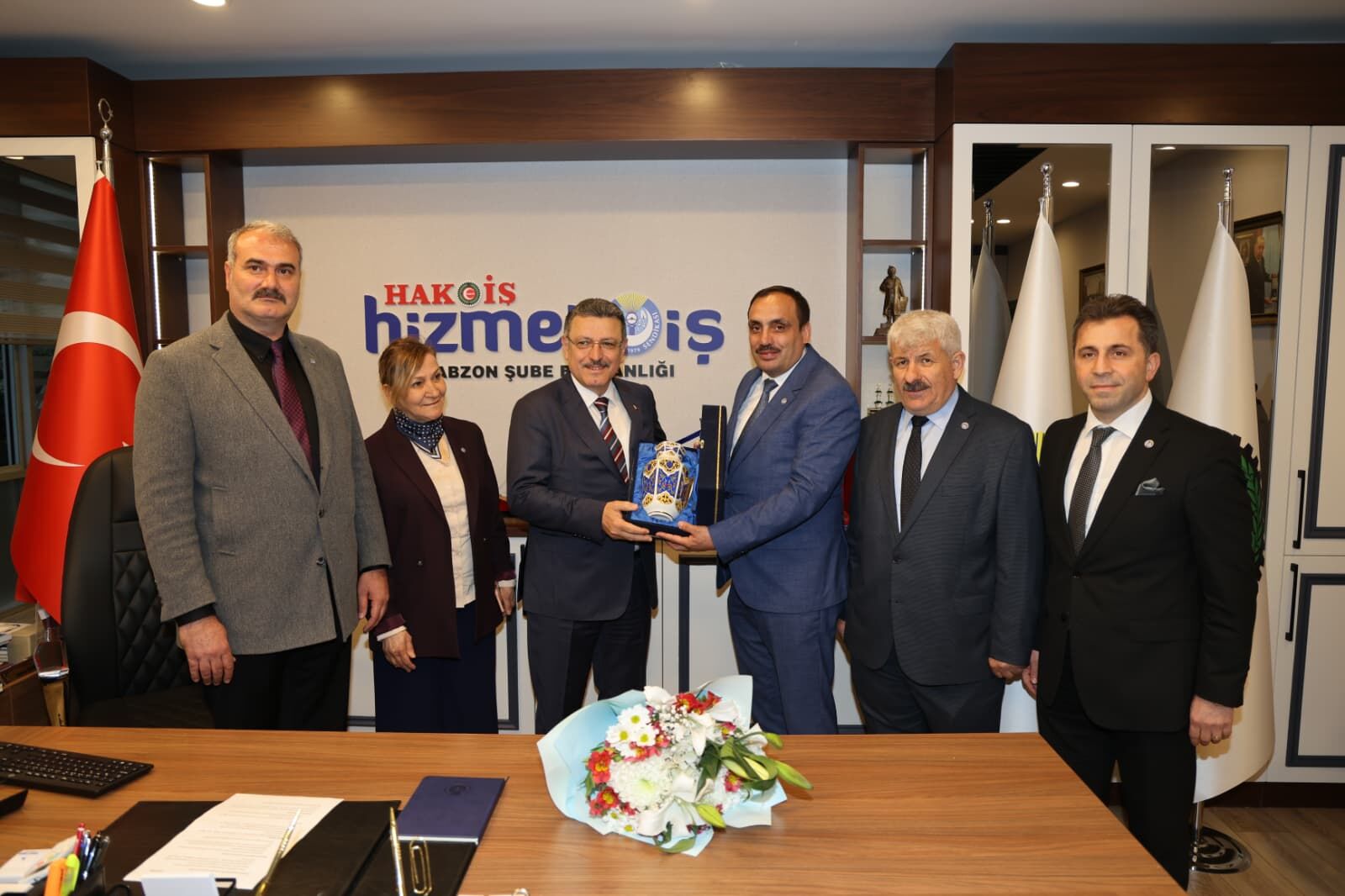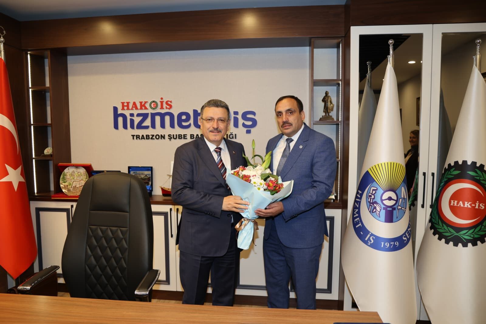Trabzon Büyükşehir Belediye Başkanı Ahmet Metin Genç, Hizmet-İş Sendikası Trabzon Şubesi’ni ziyaret etti. 20 Ocak'ta yapılan kongrede güven tazeleyen Şube Başkanı Şevket Çelik ve yönetimine hayırlı olsun dileklerini ileten Başkan Genç, sendika yöneticileri ve iş yeri temsilcilerinin de yer aldığı buluşmada, çalışanların hak ve beklentilerine yönelik hassasiyetlerini dile getirdi.