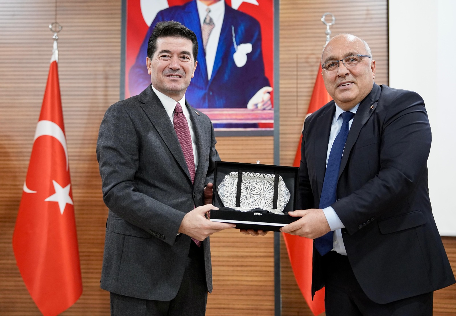 Programın sonunda Başkan Kaya, Trabzon Seyyar Semt Pazarcılar Esnaf Odası’nın vefat etmiş kurucu başkanı Aziz Yılmaz adına eşine plaket takdim ederken, Türkiye Sebzeciler Meyveciler Seyyar Pazarcılar Federasyonu Başkanı Ali Karaca’ya da telkari işçiliği ile yapılmış kahve fincan seti hediye etti.