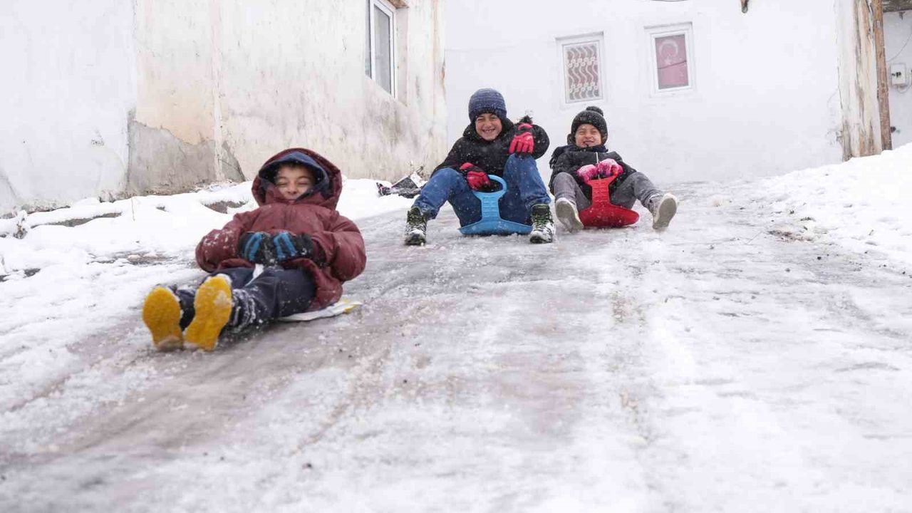 Abisi sayesinde dışarıda oyun oynama fırsatı bulan 4 yaşındaki Turna Ataner, 'Abimle beraber poşetle kayıyoruz. Abimi de çok seviyorum, karı da çok seviyorum' sözleriyle mutluluğunu dile getirdi.