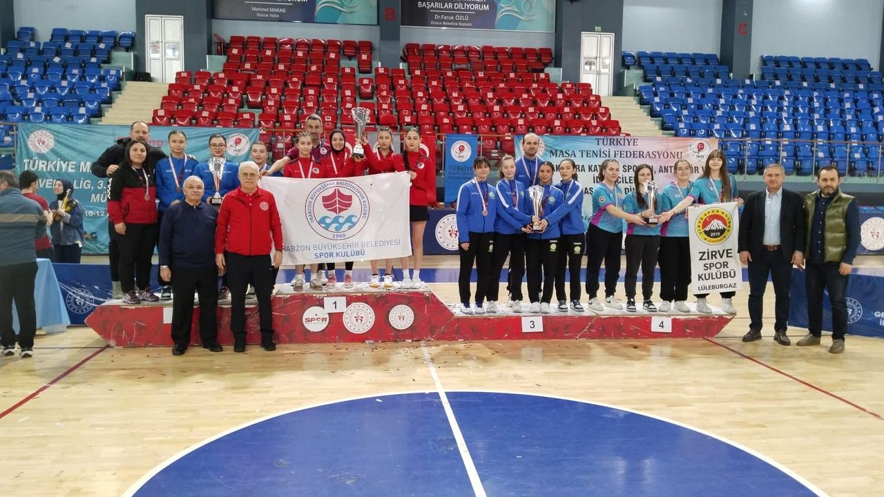 Trabzon Büyükşehir Belediyesi Kadın Masa Tenisi Takımı, 10-12 Nisan 2026 tarihleri arasında Düzce’de düzenlenen Türkiye Masa Tenisi Federasyonu NAVEK 2. Lig play-off müsabakalarında şampiyon oldu. Turnuvayı namağlup tamamlayan Trabzon ekibi, bu önemli başarıyla FEMA Marina 1. Ligi’ne yükseldi. Trabzon Büyükşehir Belediyesi’nden yapılan açıklamada, “Elde edilen bu şampiyonluk, şehrimizin spor alanındaki yükselen grafiğinin de güçlü bir yansımasıdır. Başta sporcularımız olmak üzere teknik ekibimizi ve emeği geçen herkesi yürekten tebrik ediyor, Kadın Masa Tenisi Takımımıza FEMA Marina 1. Ligi’nde başarılar diliyoruz” denildi.