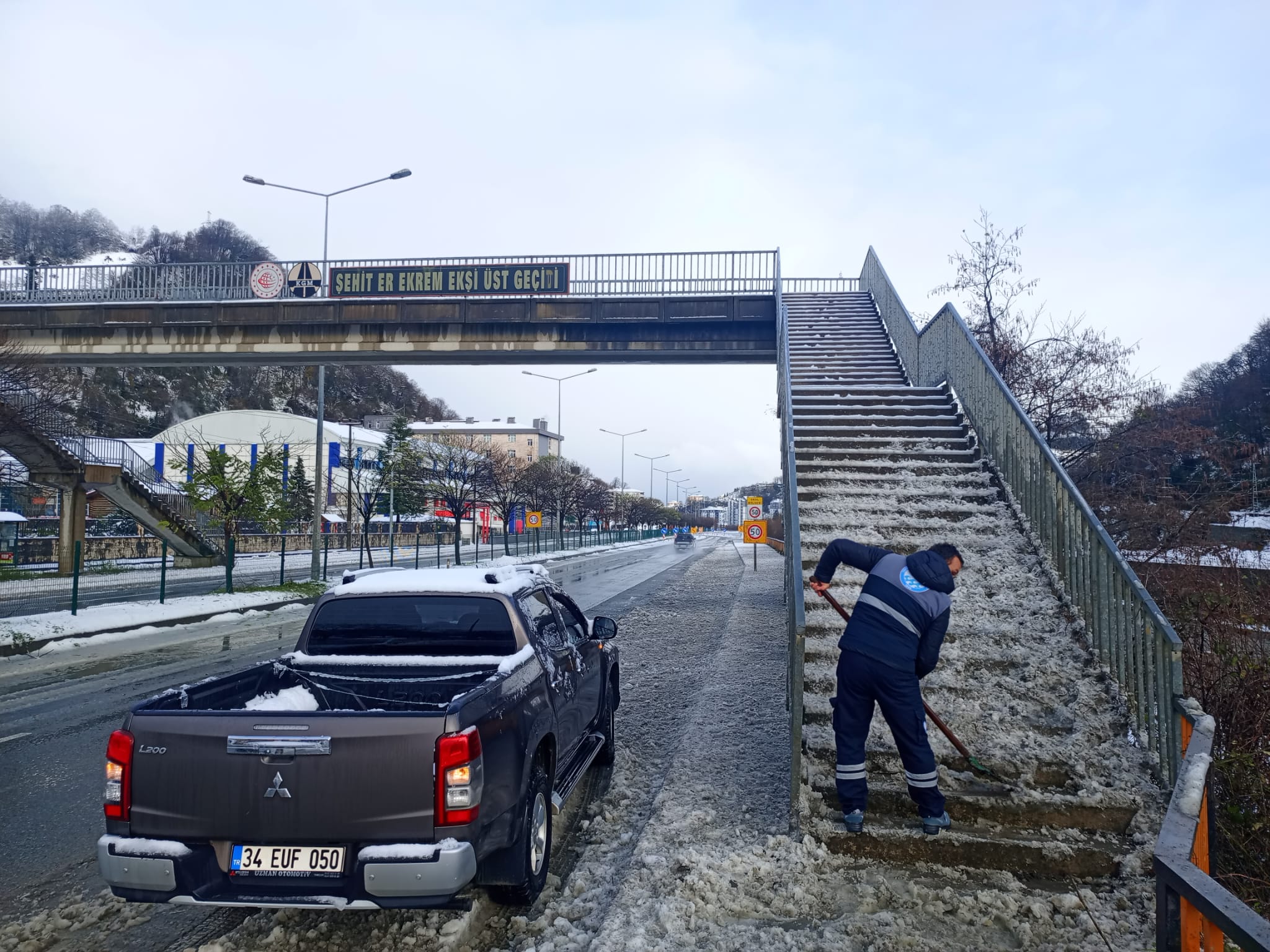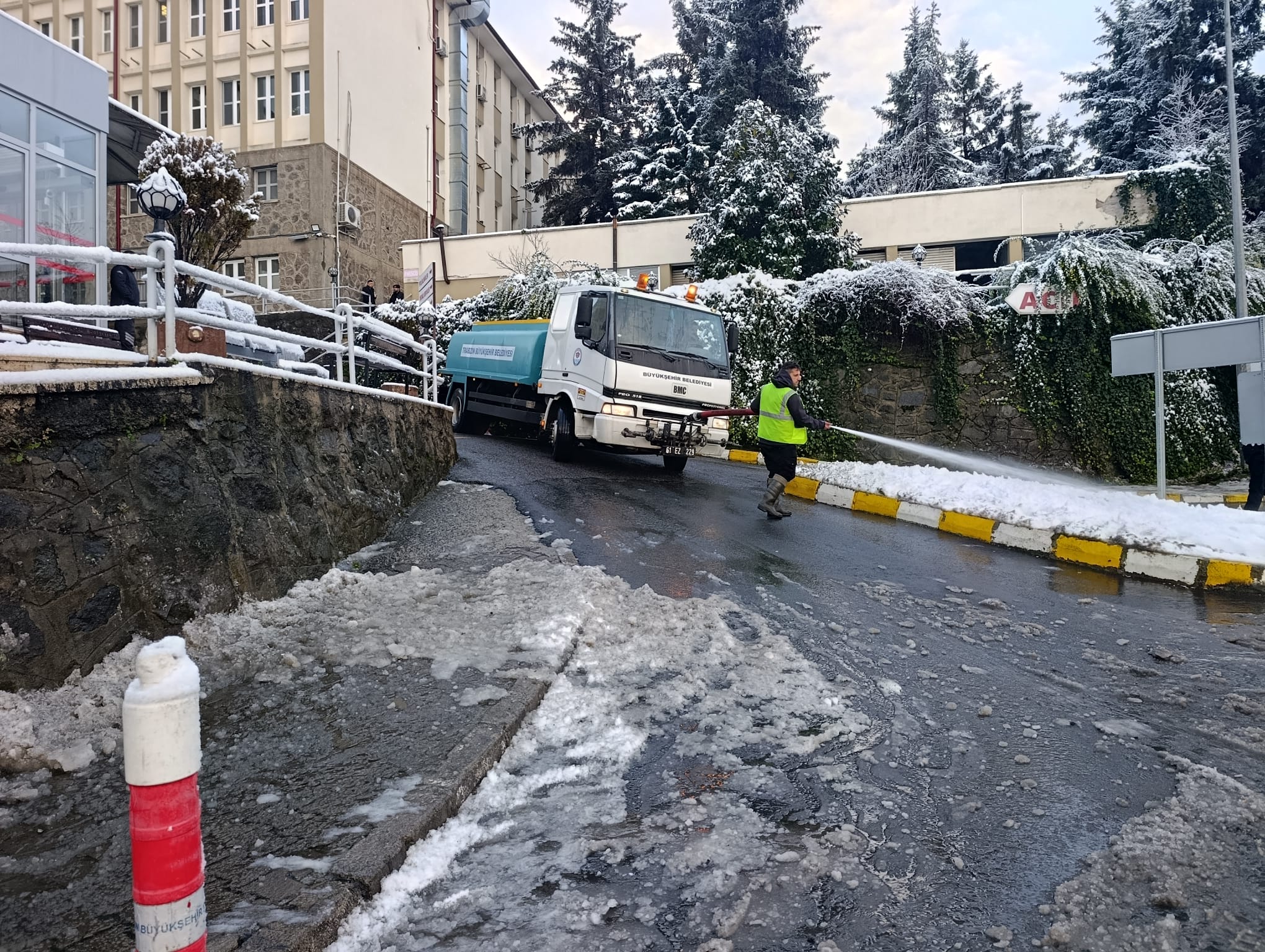 Trabzon Büyükşehir Belediyesi ekipleri, gece etkili olan kar yağışının ardından şehir merkezinde kar temizleme seferberliği başlattı. Günün ilk ışıklarıyla birlikte sahaya çıkan ekipler, yaya ve araç trafiğinin aksamaması için yoğun çaba harcıyor. Büyükşehir Belediyesi Park ve Bahçeler Dairesi Başkanlığı ile Çevre Koruma ve Kontrol Dairesi Başkanlığı ekipleri tarafından yürütülen çalışmalarda, toplam 240 personel ve 24 araç görev alıyor. Çalışmalar kapsamında yaya kaldırımları, otobüs durakları, üst geçitler, park alanları, kamu kurumları, ibadethaneler ve hastane önlerinde kar temizliği yapılırken, buzlanma riski bulunan noktalarda da önleyici tedbirler alınıyor. Özellikle vatandaşların yoğun olarak kullandığı alanlarda sürdürülen çalışmalarla günlük yaşamın olumsuz etkilenmesinin önüne geçilmesi hedefleniyor. Ayrıca bazı mahallelerde kar nedeniyle kırılan ve tehlike arz eden ağaçlarda da budama çalışmaları yapılıyor.