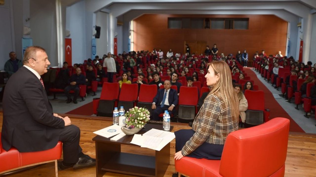 TTSO Başkanı Erkut Çelebi, Trabzon Kanuni Anadolu Lisesi’nde düzenlenen İham Veren Söyleşiler etkinliğine katıldı, öğrencilere deneyimlerini aktarırken sorularını yanıtladı. Moderatörlüğünü İngilizce Öğretmeni Hatice Sağlam’ın yaptığı söyleşide, eskiye göre sektörlerin değiştiğini ifade ederek şunları söyledi: