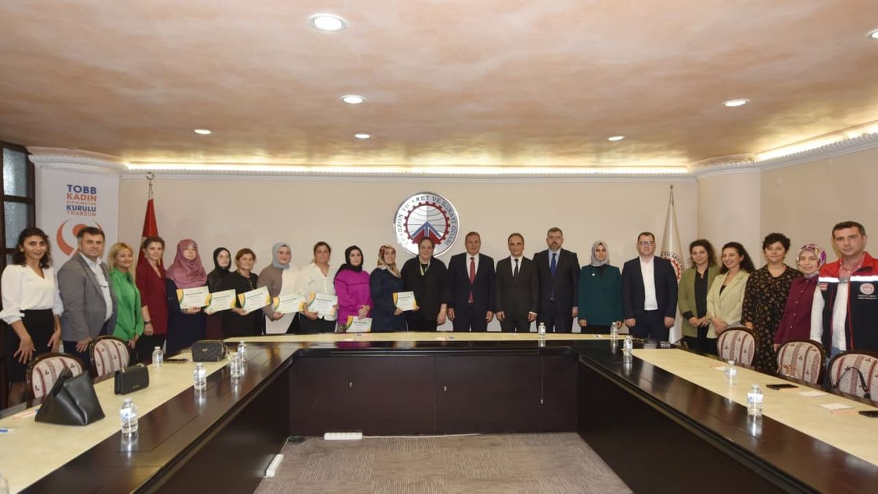 Trabzon Ticaret ve Sanayi Odası'nda düzenlenen sertifika törenine TTSO Başkanı Erkut Çelebi, Trabzon Üniversitesi Rektör Yardımcısı Prof. Dr. Hüseyin Serencam, TOBB Trabzon İl Kadın Girişimciler Kurulu Başkanı Ahsen Aydın, DOKA Trabzon Yatırım Destek Ofisi Koordinatörü Serkan Atabaş, Trabzon İl Tarım ve Orman Müdürlüğü, Aile ve Sosyal Hizmetler İl Müdürlüğü, Trabzon Barosu ve Sağlık İl Müdürlüğü'nden yetkililer ve eğitmenler katıldı.