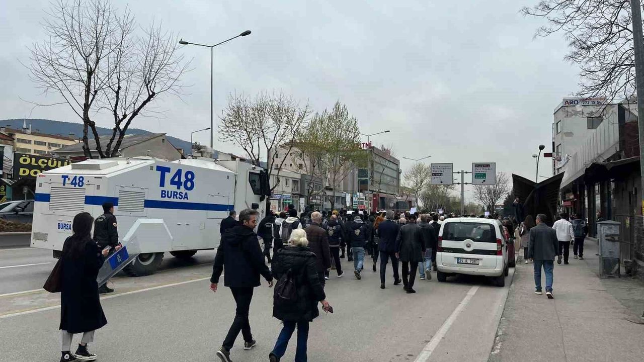 Eylem sırasında toplanan grup sık sık 'Bursa'nın başkanı Mustafa Bozbey' sloganları atarak destek gösterisinde bulundu.