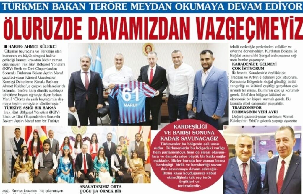 "Kerkük Türkmenlerinin uzun süredir maruz bırakıldığı zulüm, Türk milletinin vicdanına kazınmış, kahredici bir imtihandır. Nice Türkmen ocağı söndürülmüş, nice aile yurdundan edilmek istenmiş, nice analar gözyaşı dökmüş, nice çocuk korkuyla titremiş, nice yiğit baskı ve mahrumiyetle sınanmıştır. Türkmen elinde Türkiye'nin sesini kısmaya, tarihi mevcudiyeti bulandırmaya, millî kimliği zayıflatmaya, kadim Türk yurdunu siyasi oyunlar ve demografik tertiplerle özünden koparmaya yeltenenler olmuştu"