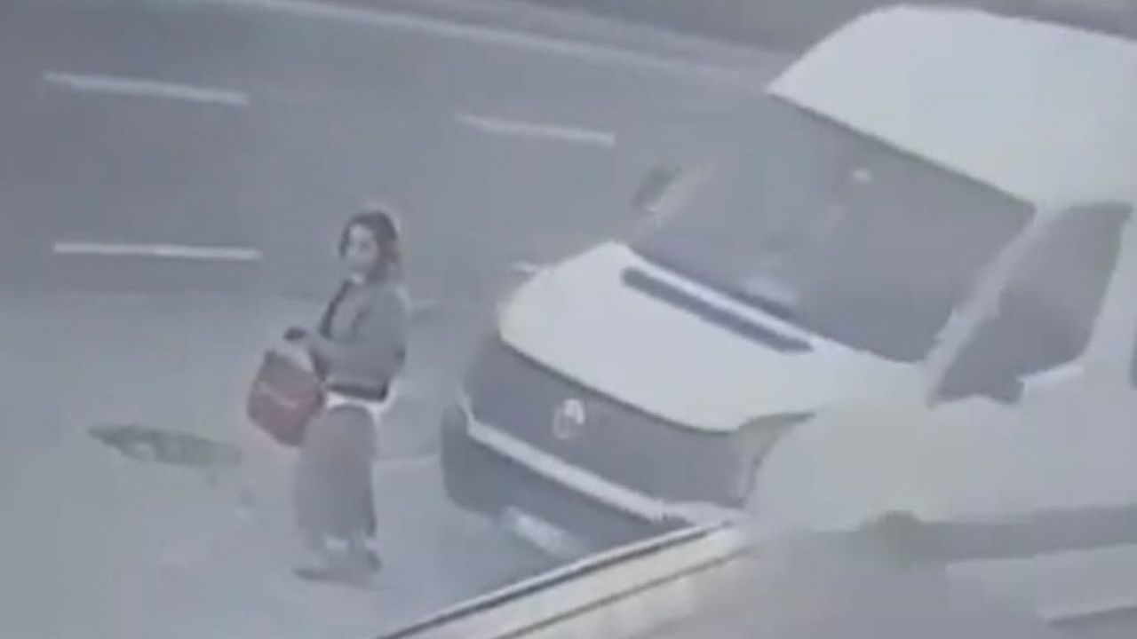 Trabzon'un Yomra ilçesinde oturduğu sitenin önünde dolmuş bekleyen kadın kendisini fark etmeyen bir minibüsün altında kalarak sürüklenirken, o anlar sitenin güvenlik kamerasına yansıdı.