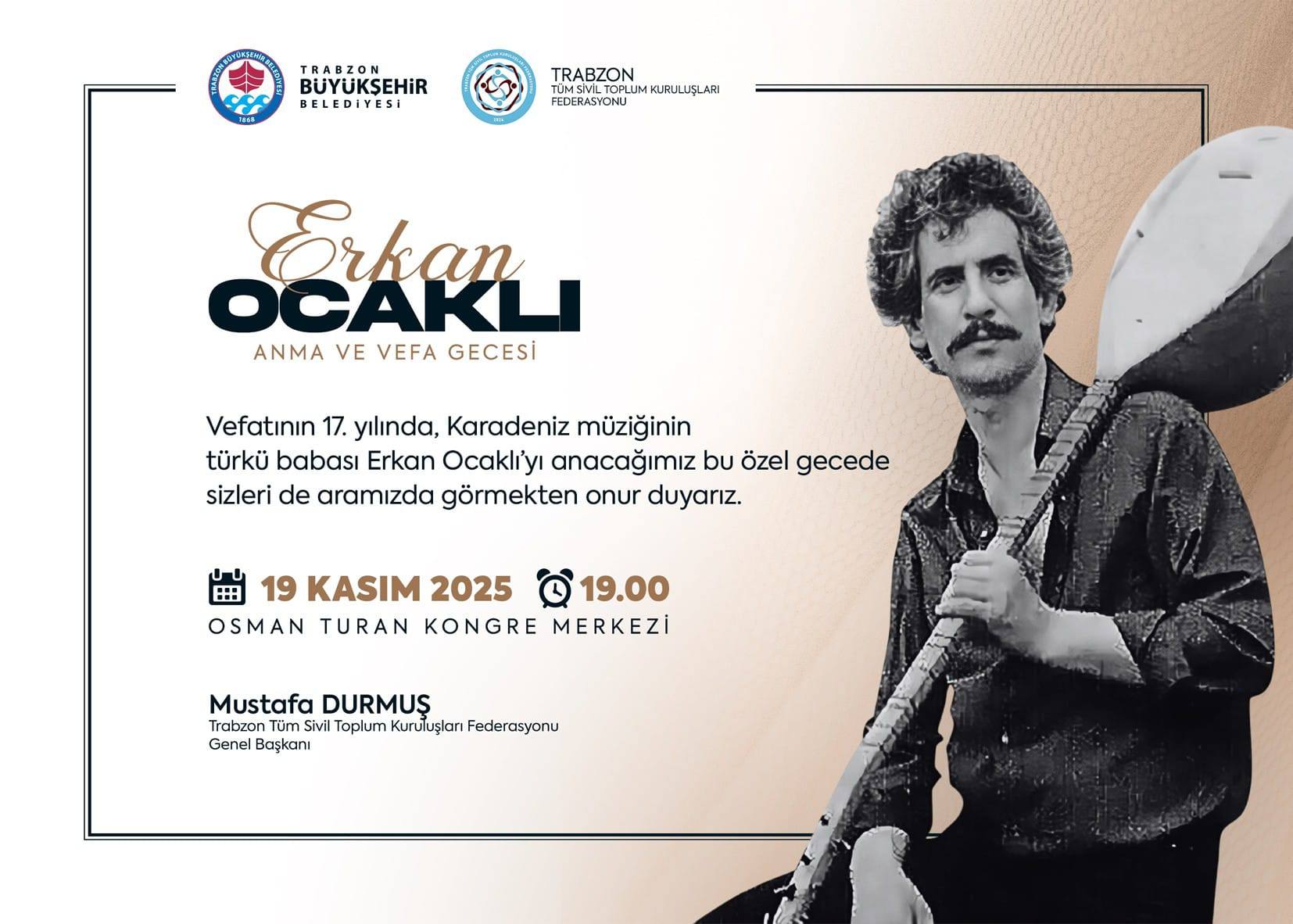 Etkinliğin davet metninde, Trabzon Tüm Sivil Toplum Kuruluşları Federasyonu Genel Başkanı Mustafa Durmuş, tüm halkı bu anlamlı gecede bir araya gelmeye davet ederek, “Erkan Ocaklı’yı anacağımız bu özel gecede sizleri de aramızda görmekten onur duyarız.” ifadelerine yer verdi.