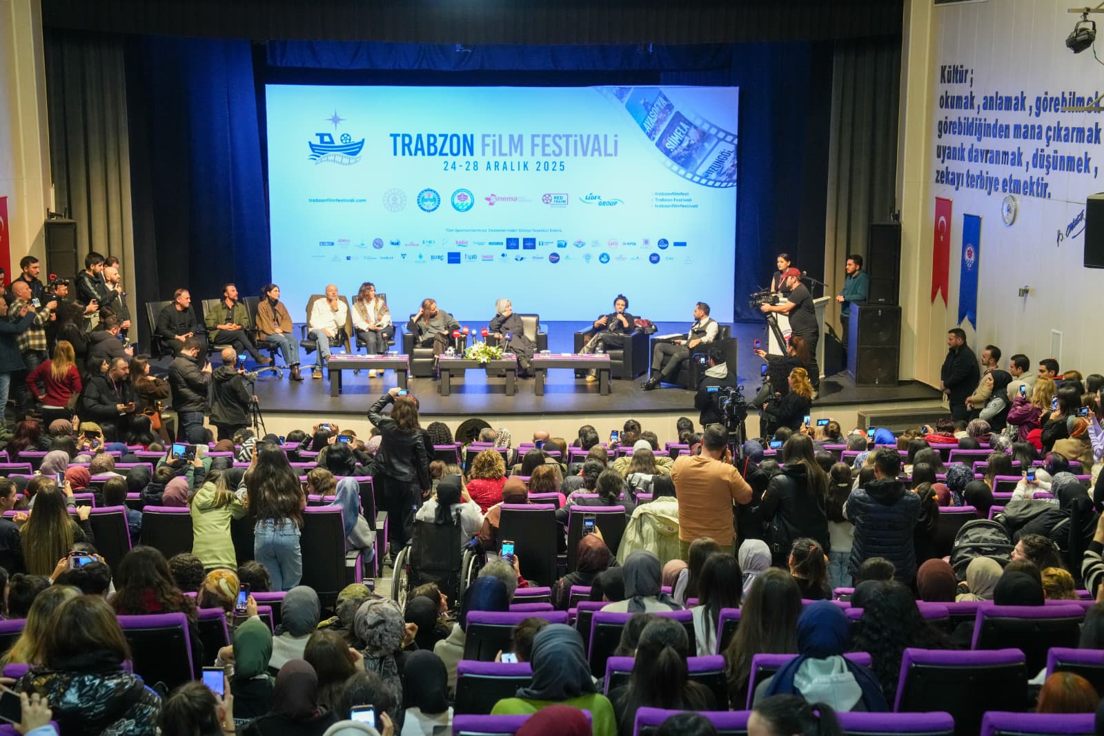 TRT 1 ekranlarında izleyiciyle buluşan Taşacak Bu Deniz dizisinin senarist ve oyuncularından oluşan ekip, Trabzon Film Festivali kapsamında düzenlenen söyleşide yoğun ilgiyle karşılandı. Salonun tamamen dolduğu programda dizi ekibi, izleyicilerle samimi ve keyifli anlar yaşadı.