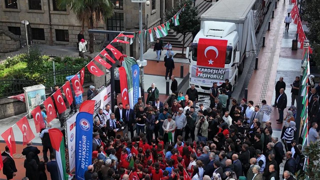Trabzon Büyükşehir Belediyesi, Hayrat İnsani Yardım Derneği ve İl Milli Eğitim Müdürlüğü iş birliğiyle toplanan 250 ton insani yardım malzemesi, 10 TIR'dan oluşan konvoyla Gazze'ye ulaştırılmak üzere yola çıktı. Kahramanmaraş Caddesi'nde düzenlenen yardım konvoyunu uğurlama törenine, Vali Aziz Yıldırım, Büyükşehir Belediye Başkanı Ahmet Metin Genç ve Hayrat İnsani Yardım Derneği yöneticilerinin yanı sıra, ilçe belediye başkanları, siyasi parti ve sivil toplum kuruluşlarının temsilcileri, kurum müdürleri, öğrenciler ile çok sayıda vatandaş katıldı.