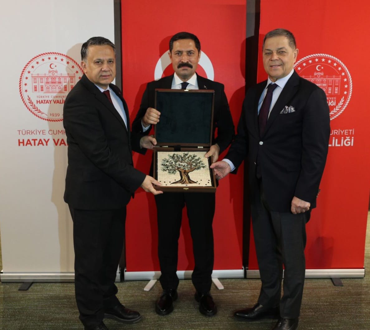 KGK Genel Başkanı Mehmet Ali Dim ve Genel Başkan Yardımcısı Savaş Çokduygulu, Hatay Valisi Mustafa Masatlı’ya buluşmanın anısına bir şükran plaketi takdim ettiler. Vali Masatlı da KGK Genel Başkanı Dim ve Çokduygulu’ya bir plaket sunarak buluşmadan duyduğu memnuniyeti dile getirdi.