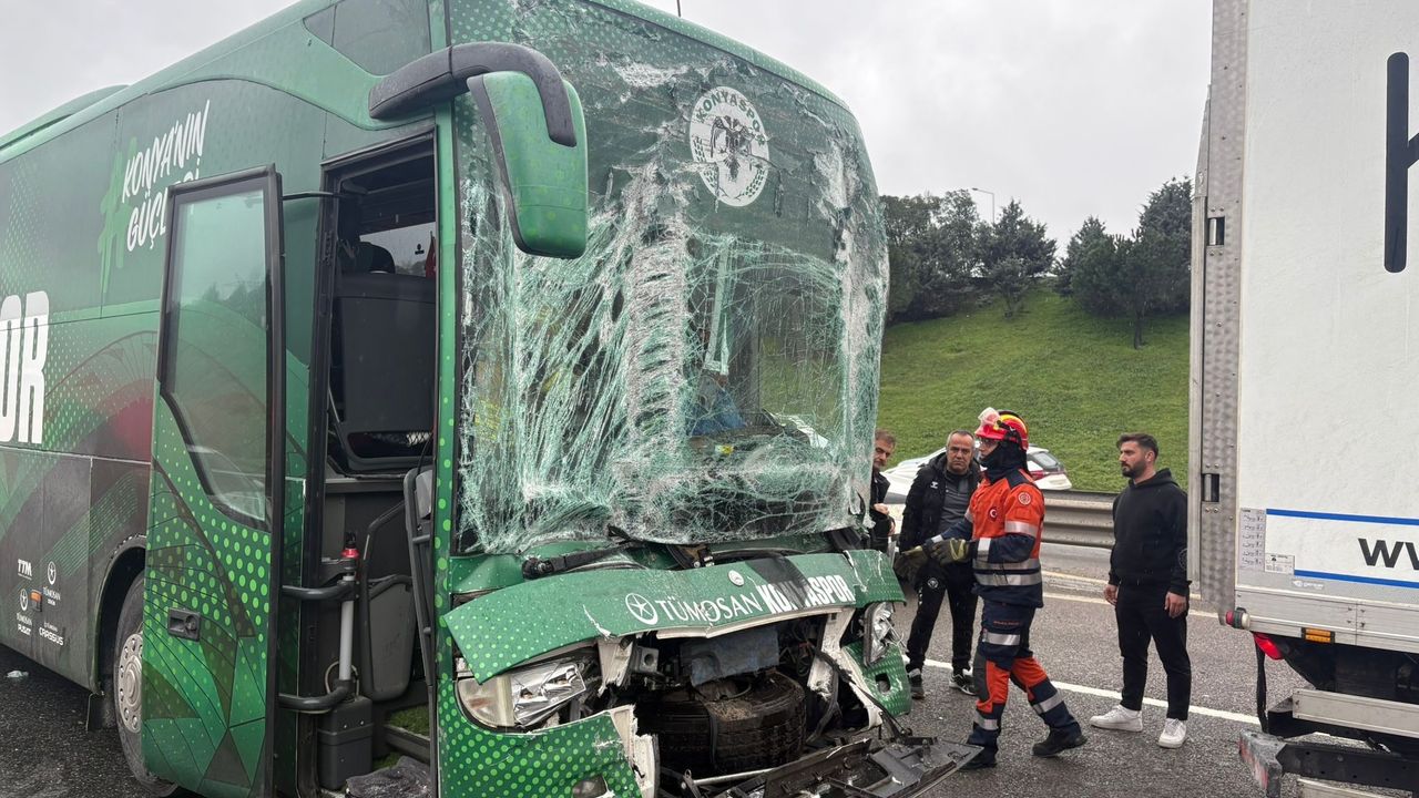 Kaza, saat 15.10 sıralarında TEM Otoyolu Akşemsettin Mahallesi'nde meydana geldi. Edinilen bilgiye göre, Konyaspor U-19 futbol takımını taşıyan kulüp otobüsü Samandıra Kavşağı'nda kamyona arkadan çarptı. İhbar üzerine olay yerine sağlık, polis ve itfaiye ekibi sevk edildi. Otobüste sıkışan şoför, itfaiye ekipleri tarafından kurtarıldı. Otobüs şoförü ve 2 futbolcunun yaralandığı kazada TEM Otoyolu'nda iki şerit trafiğe kapatıldı.