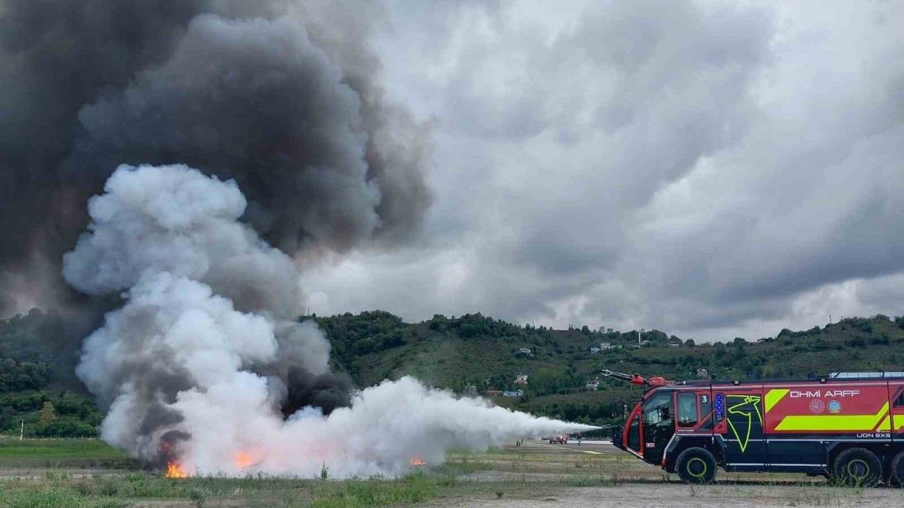 Devlet Hava Meydanları İşletmesi Genel Müdürlüğü (DHMİ) Uçak Kaza Kırım Kurtarma ve Yangınla Mücadele Yönergesi kapsamında yapılan tatbikatta, senaryo gereği sert iniş yapan yolcu uçağı ikiye bölündü. Uçağın bir kısmında çıkan yangına Havalimanı ARFF ekipleri kısa sürede müdahale etti.