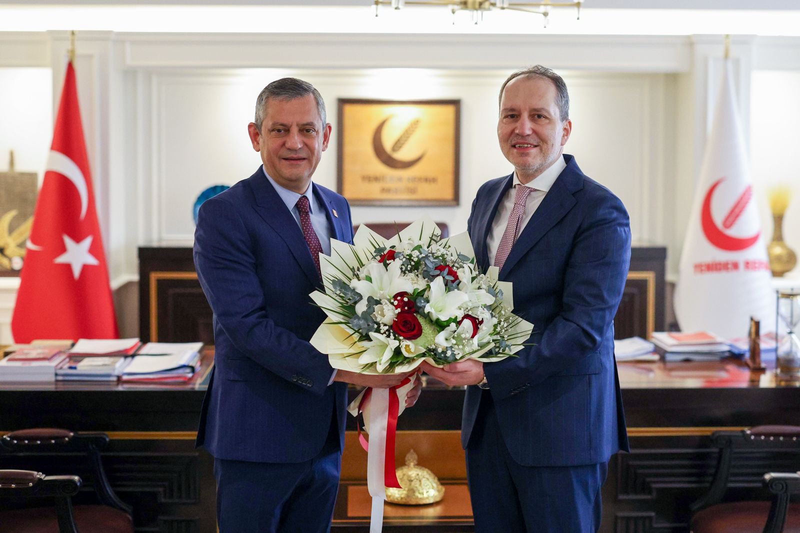 CHP Genel Başkanı Özgür Özel ile Yeniden Refah Partisi Genel Başkanı Fatih Erbakan, Yeniden Refah Partisi Genel Merkezi’nde bir araya geldi. İki lider, görüşmenin ardından ortak basın açıklaması yaptı.