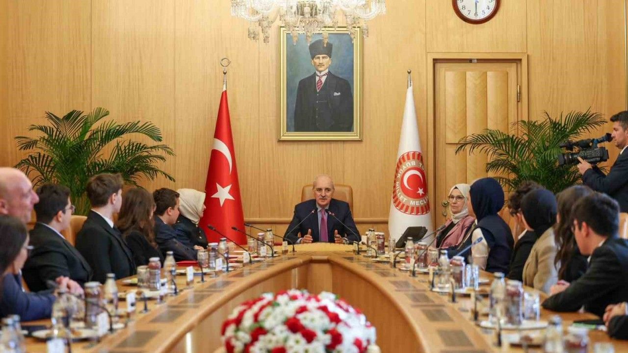 TBMM Başkanı Kurtulmuş, Meclis Başkanlık Divanı Toplantı Salonu’nda, Aile ve Sosyal Hizmetler Bakanı Mahinur Özdemir Göktaş ile 26. Ulusal Çocuk Forumu dolayısıyla Ankara’da bulunan çocuk temsilcilerini kabul etti. Türkiye Çocuk Hakları koordinatörleri kabulde 26. Ulusal Çocuk Forumu Sonuç Bildirgesi’ni okudu. Kendisine takdim edilen bildirinin ardından konuşan Kurtulmuş, "Geçen sene de sizleri yine aynı bu salonda ağırlamıştık. Sizlerle gurur duyuyoruz. Sizleri Türkiye’nin ve dünyanın geleceği olarak görüyoruz. Hem büyük imkanların olduğu hem de büyük meydan okumalarının olduğu bir çağda yaşıyorsunuz. Bizlerin yaşadığı, büyüdüğü ve geliştiği dönemlerle kıyaslandığına çok daha hızlı bir dünyayı yaşıyorsunuz. Bizim birkaç senede gördüğümüz şeyi siz birkaç saat içerisinde karşılaşıyor onlarla yüz yüzey kalıyorsunuz. Bu gelişmelerin hiçbirisinden geri durmak, bunları yok saymanın da mümkün olmadığı bir dönemdeyiz. Dolayısıyla hem gelişmeleri çok iyi takip etmek ama aynı zamanda da gelişmelerin ortaya çıkarmış olduğu olumsuzluklardan da etkilenmeyecek bir şekilde tecrübelerimizi almak ve kendimizi geliştirmek durumundayız. Hiç şüphesiz dünyadaki bu kadar hızlı gelişmeyi sağlayan iki önemli etken birisi yüksek teknolojilerdeki akıl almaz hızla devam eden gelişmelerdir. Diğeri ise küreselleşme dediğimiz gelişme yani özellikle uygun teknolojilerin gelişmesiyle birlikte bilginin çok hızlı yayılma kabiliyetine sahip olması" ifadelerini kullandı.