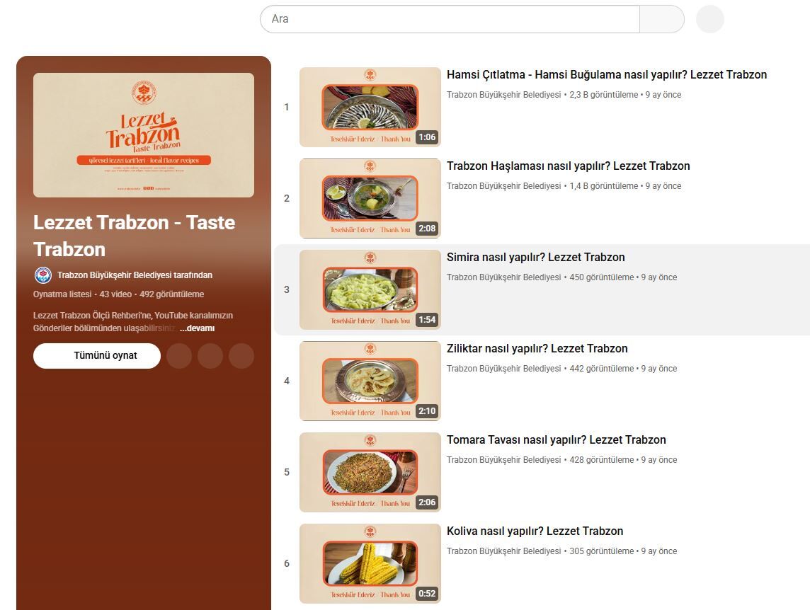 Trabzon Büyükşehir Belediyesi, nesilden nesile aktarılan yöresel mutfak kültürünü 'Lezzet Trabzon' adlı eserle kayıt altına aldı. Kültür, Sanat ve Sosyal İşler Dairesi Başkanlığı’na bağlı Turizm Şube Müdürlüğü tarafından hazırlanan kitapta; çorbalardan tavaya, balık çeşitlerinden ana yemeklere, ara sıcaklardan tatlılara kadar Trabzon mutfağına özgü 43 farklı tarif yer alıyor. Kitap yalnızca yazılı tariflerden oluşmuyor, sayfalarda bulunan QR kodlar aracılığıyla yemeklerin malzemeleri ve yapılış aşamaları videolu anlatımlarla dijital ortamda da izlenebiliyor. İlk etapta Türkiye genelinde gastronomi eğitimi veren okullara dağıtılması planlanan kitapla, Trabzon’un zengin mutfak mirasının ulusal ve uluslararası alanda tanıtılmasına katkı sağlanması hedefleniyor.