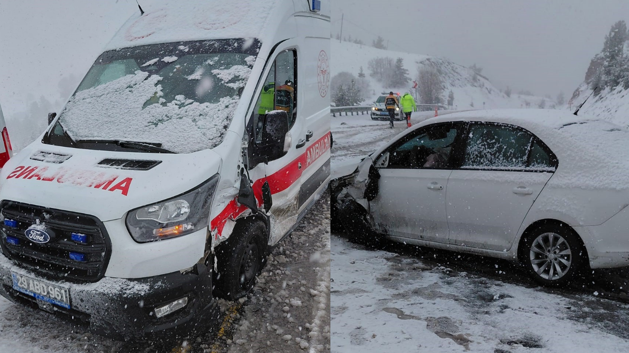 Gümüşhane'de otomobil ile ambulansın çarpıştığı kazada 3 kişi yaralandı.