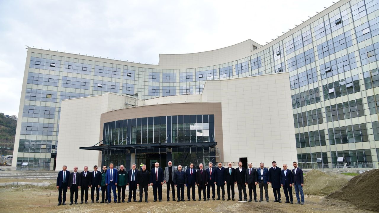 Trabzon Şehir Hastanesi şantiyesinde Sağlık Bakanlığı başta olmak üzere, Trabzon Büyükşehir Belediye Başkanlığı, Karayolları ve yüklenici firma yetkililerinin katıldığı bir toplantı yapıldı.
