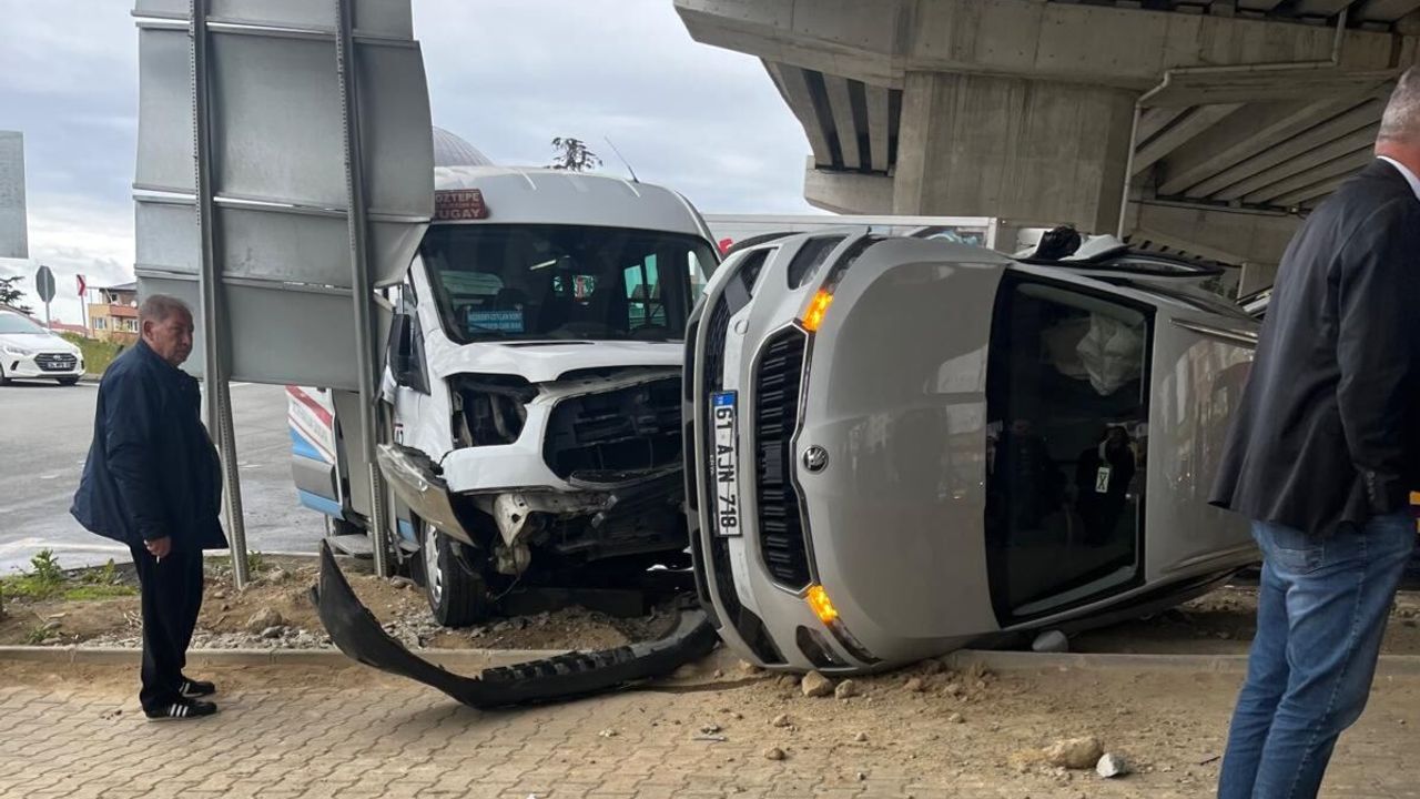 Trabzon’da Dolmuş ile Otomobil Kafa Kafaya Çarpıştı