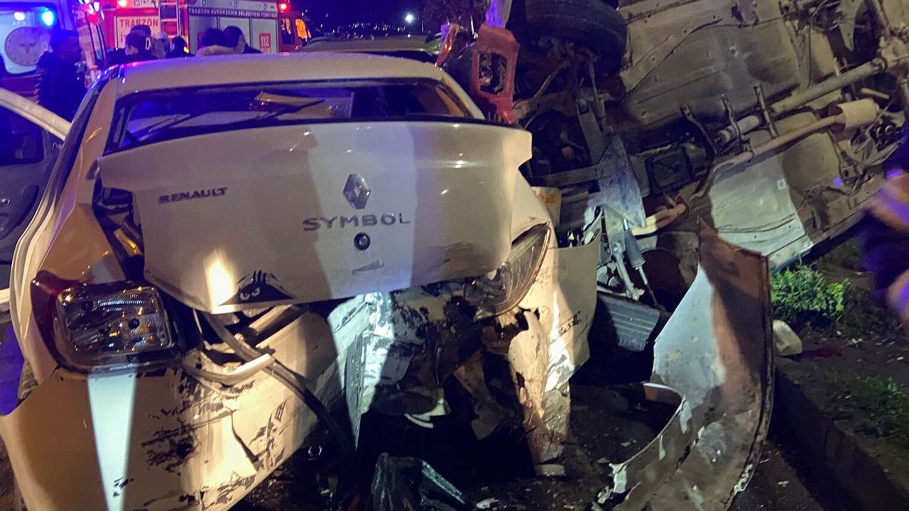 Trabzon’da Korkutan Kaza: Araç Takla Atarak Park Halindeki Otomobillerin Üzerine Düştü