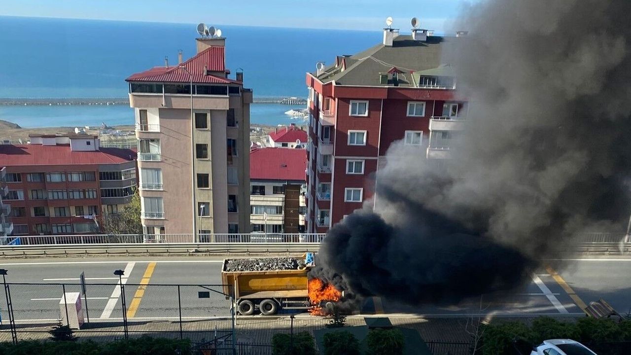 Trabzon'un Ortahisar ilçesi Kanuni Bulvarı'nda bir taş kamyonunda çıkan yangın korkuttu.