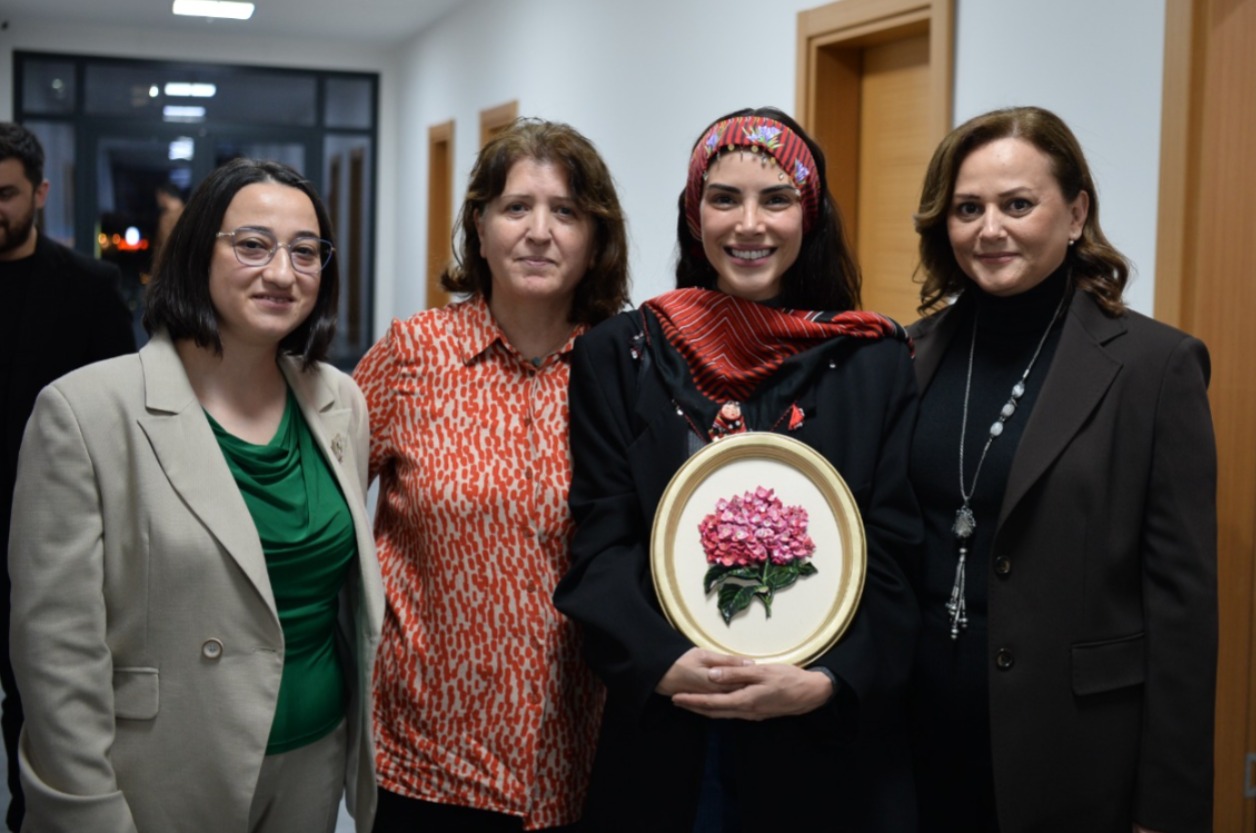 Çekimleri Trabzon'da yapılan ve TRT 1 ekranlarında izlenme rekorları kıran 'Taşacak Bu Deniz' adlı dizinin başrol oyuncusu Deniz Baysal, Trabzon Büyükşehir Belediyesi Kadın Yaşam ve İstihdam Merkezi’ni ziyaret etti.