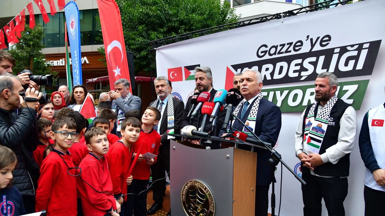 Yardım kampanyası kapsamında hazırlanan 10 tır dolusu insani yardım malzemesi, yapılan konuşmalar ve edilen duaların ardından Gazze’ye gönderildi.